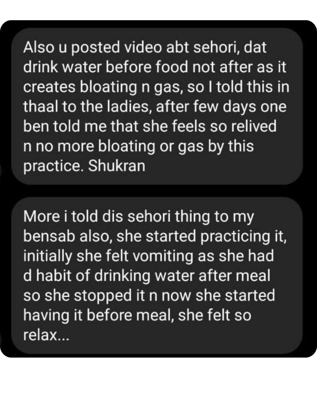 Instead of having a glass of plain water on an empty stomach before Sehri, have a glass of water with a teaspoon of honey (honey water). Water can be room temperature or lukewarm. For those with diabetes or insulin resistance, can add a half teaspoon of Apple Cider Vinegar to water with honey.