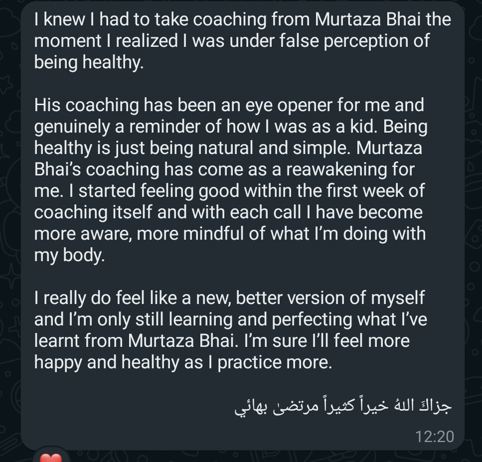 Murtaza made me rethink my eating habits. No matter what walk of life you come from your health should be your top priority.