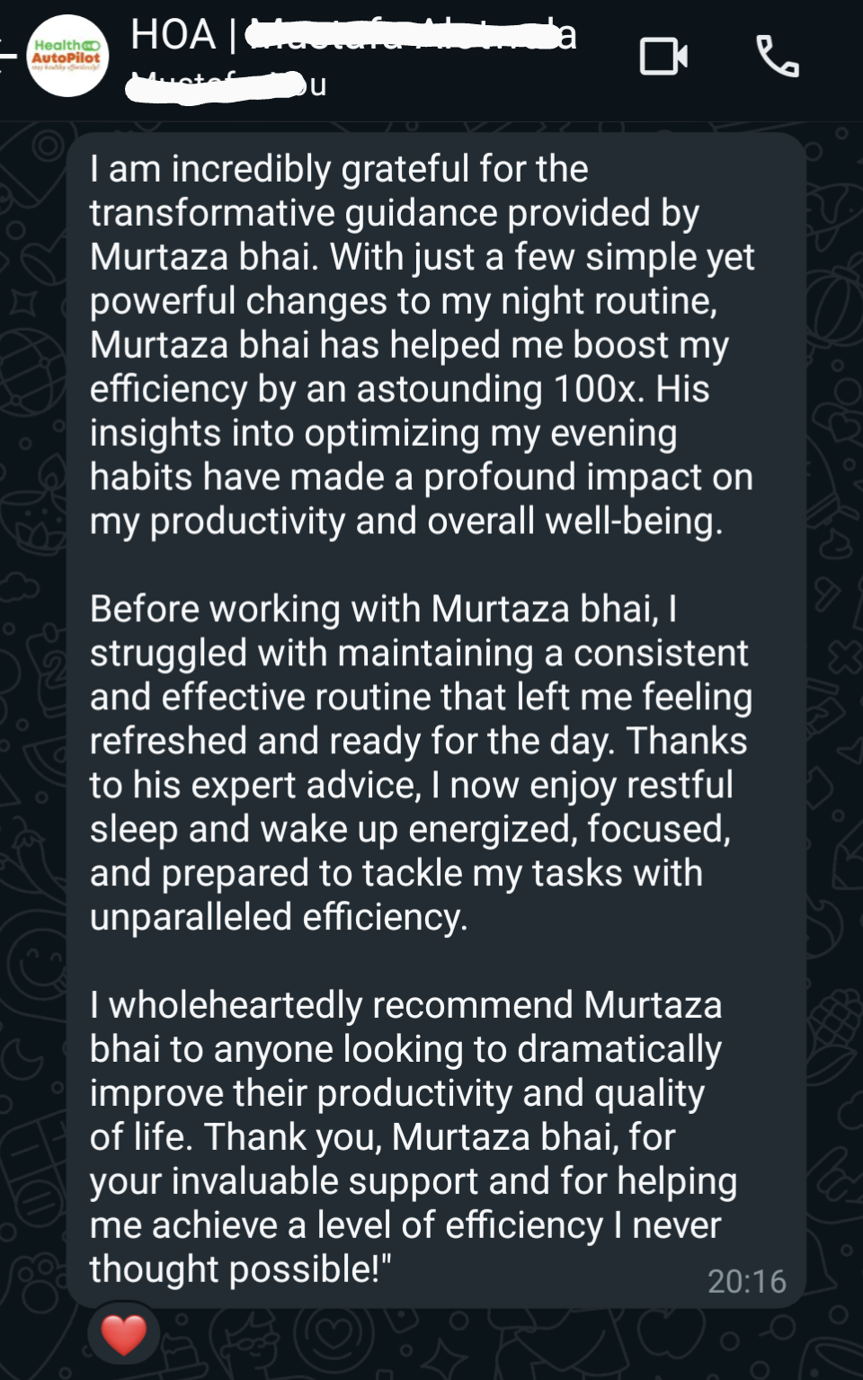 I can confidently say that my Health is On Autopilot. I was mentally at peace with all the concepts I learned during the coaching.